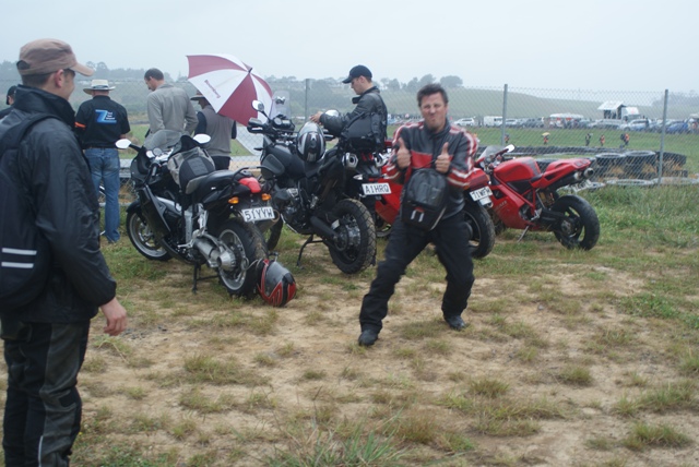 We took our regular back road through Clevedon, Hunua, Mangatawhiri and Mercer. It was still raining lightly when we arrived at Hampton Downs -just part of the adventure. We arrived just in time to see the Rainmaster Jim Richards, a New Zealand icon who has won Bathurst several times, win the Group A race in the JPS M635i ahead of much faster cars.
