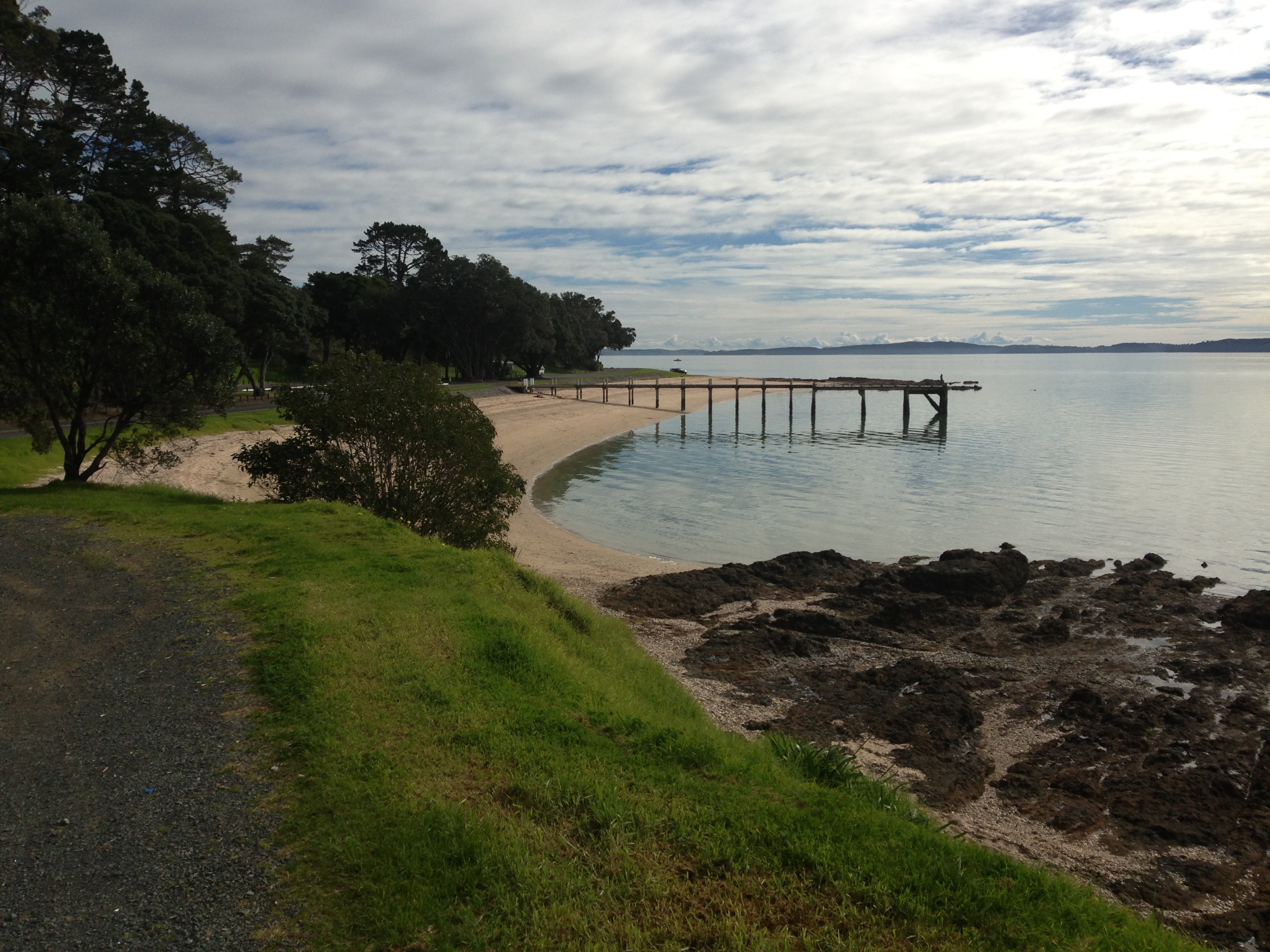 Justin and I stopped on the coastline on the way home to enjoy the beauty of the Hauraki Gulf looking towards Waiheke Island to the north-east and the Coromandels in the distance. 17 degrees warm. Good company, nice ride. Is winter over?