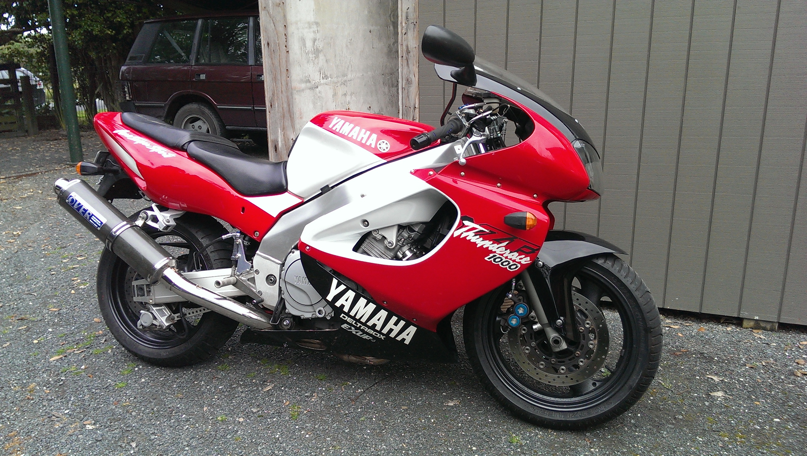 1997 Yamaha YZF1000R Thunderace, travelled 16k. The full Over exhaust system sounds awesome. This bike will make a great sports tourer.